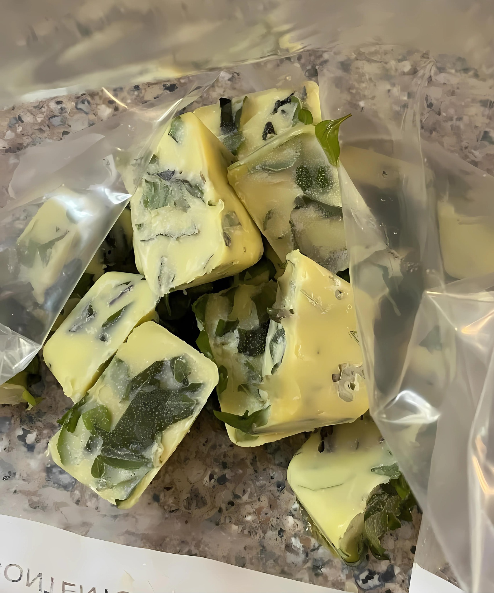 Preparazione: Metti le foglie di basilico in una vaschetta per il ghiaccio.