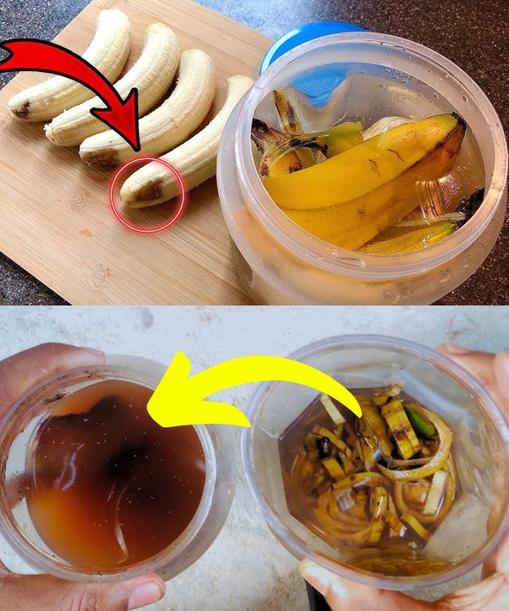 2. Preparate il fertilizzante: Mettete le bucce di banana in un litro d’acqua e lasciatele in ammollo per tutta la notte.