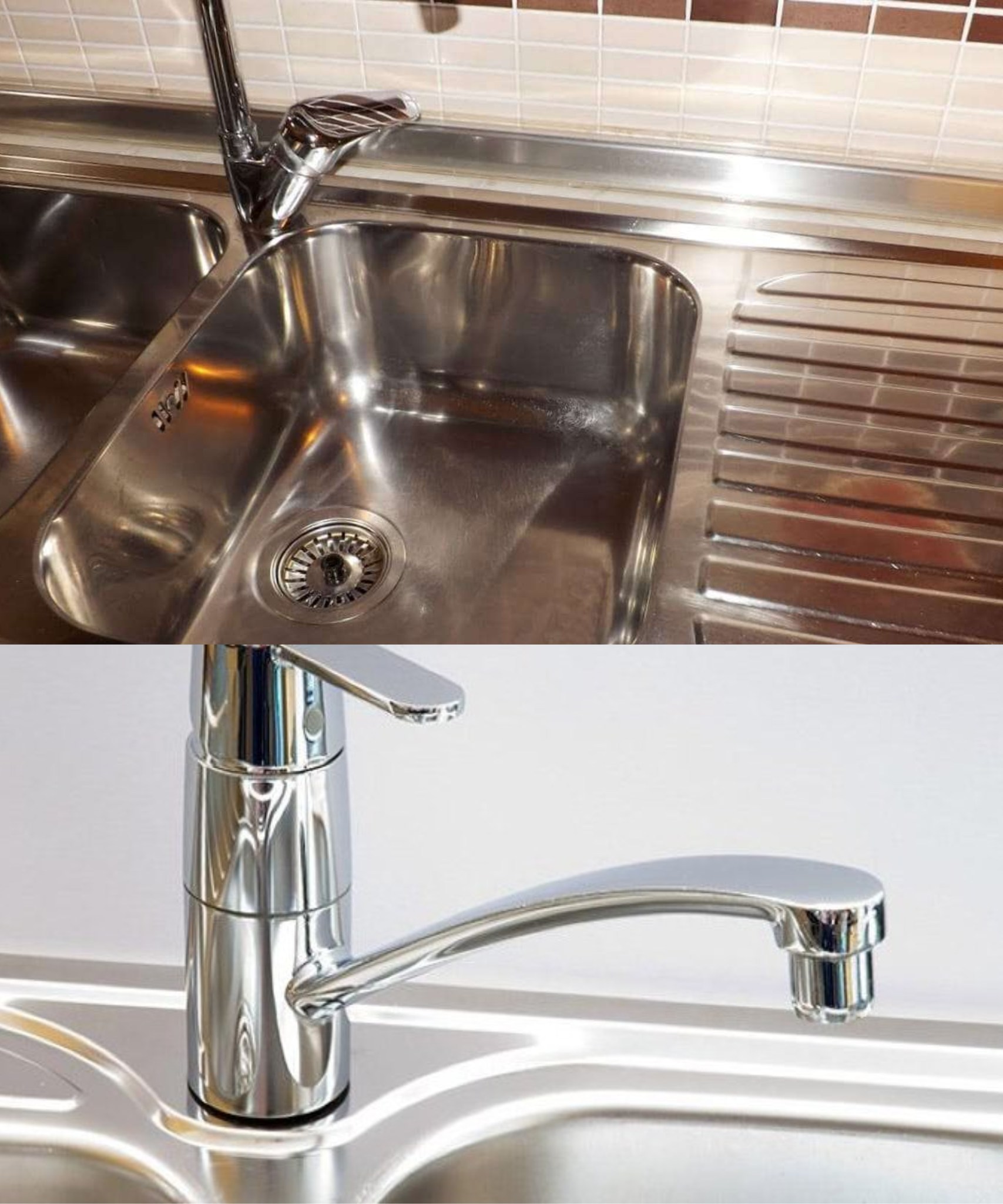 Pulizia del lavello in acciaio: L’acciaio è resistente ma tende a presentare aloni e impronte, richiedendo una manutenzione costante per rimanere lucido.