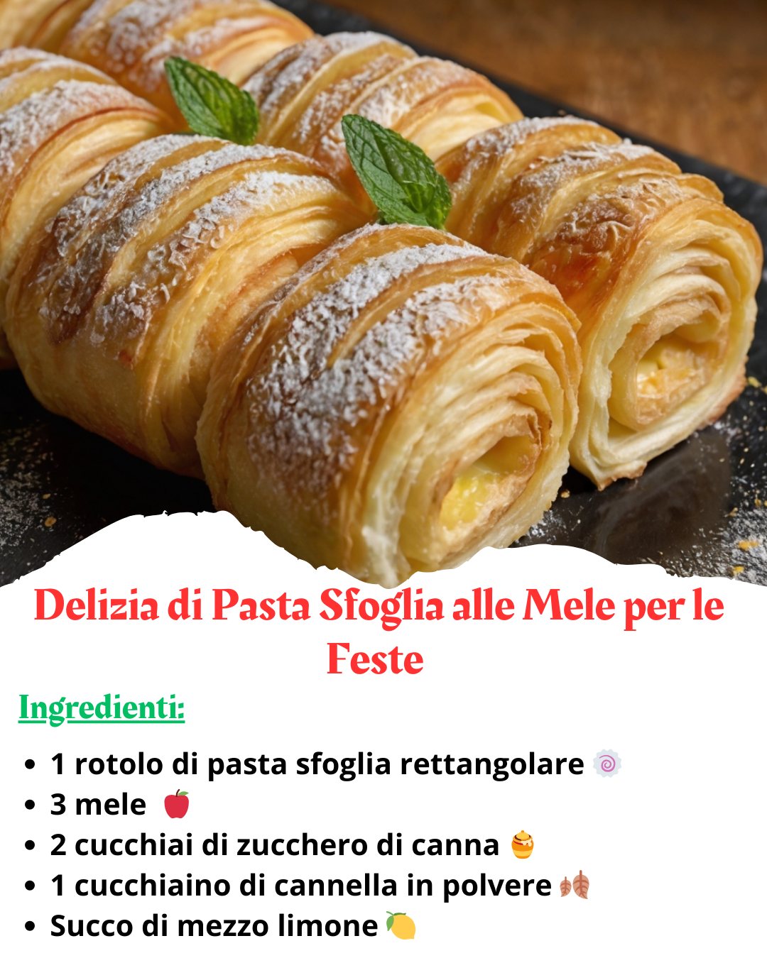 Un dolce goloso e profumato che incarna tutta la dolcezza delle mele e la croccantezza della pasta sfoglia, perfetto per le occasioni speciali delle festività. La combinazione di mele caramellate, spezie e una base di pasta sfoglia croccante renderà questo dessert irresistibile!
