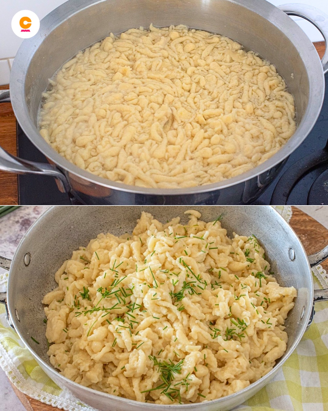 Gli spätzle sono i celebri gnocchetti tipici della tradizione tirolese. Dalla consistenza molto morbida, diversa dai classici gnocchi di patate, sono preparati con farina, uova e acqua, quindi confezionati con uno speciale strumento, chiamato Spätzlehobel: una sorta di grattugia che, fatta scivolare avanti e indietro, consentirà all’impasto di cadere a piccole gocce nell’acqua bollente. Una volta lessati, vi basterà saltarli in padella con burro ed erba cipollina, per un risultato cremoso e irresistibile. Scoprite come realizzarli seguendo passo passo la nostra ricetta e serviteli come primo piatto in occasione di un bel pranzo di famiglia. Se vi è piaciuta questa ricetta, provate anche gli spätzle agli spinaci.