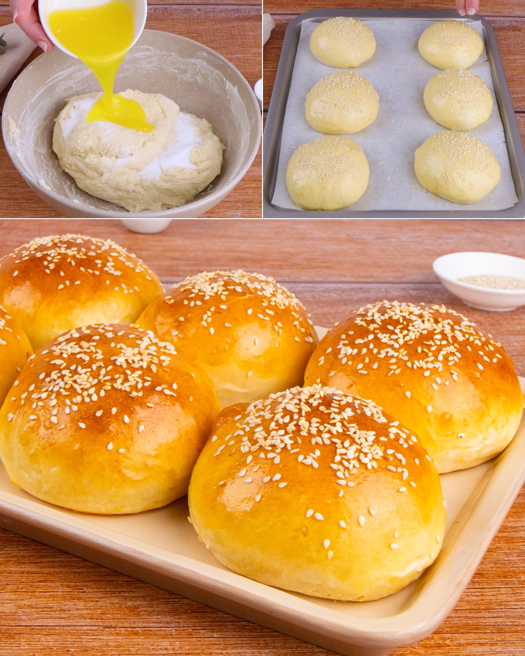 Il segreto per ottenere dei paninetti morbidi per diversi giorni e impeccabili proprio come quelli dei pub, sta tutto nella doppia lievitazione dell’impasto: prima nella ciotola o nel boccale della planetaria, dopo aver lavorato insieme il lievito di birra sciolto nell’acqua tiepida con l’uovo, il burro fuso, la farina, il sale e lo zucchero semolato, e poi in teglia, una volta formati con il composto ormai raddoppiato di volume tanti bocconcini regolari da circa 100 gr ciascuno. Trascorso il tempo di riposo, non ti rimarrà che lucidare i panini con una miscela di latte e uovo sbattuto, cospargerli poi in superficie con i semini di sesamo e cuocerli infine in forno caldo a 180 °C per soli 15 minuti.
