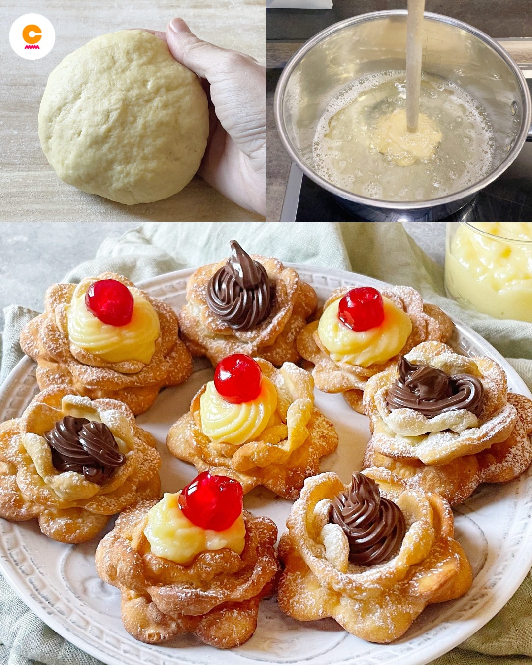 Il segreto per un risultato impeccabile è immergere le rose nell’olio di semi ben caldo, poche alla volta, e rigirarle delicatamente fino a quando non saranno dorate. Una volta pronte, le rose di Carnevale vengono cosparse con lo zucchero a velo e farcite con crema pasticciera e ciliegie candite. Sono ottime da servire a fine pasto, per un buffet insieme ad altri dolci di Carnevale, ma anche come sfiziosa merenda per tutta la famiglia.