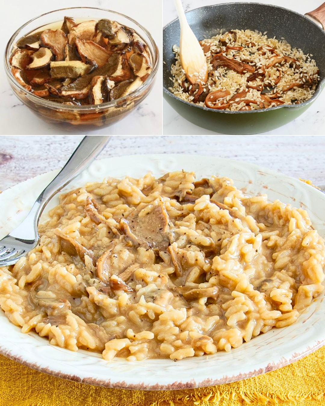 Scopri come preparare il risotto ai funghi secchi seguendo passo passo procedimento e consigli. Se ti è piaciuta questa ricetta, prova anche il risotto ai funghi e zafferano, il risotto funghi e salsiccia e le tagliatelle ai funghi porcini.