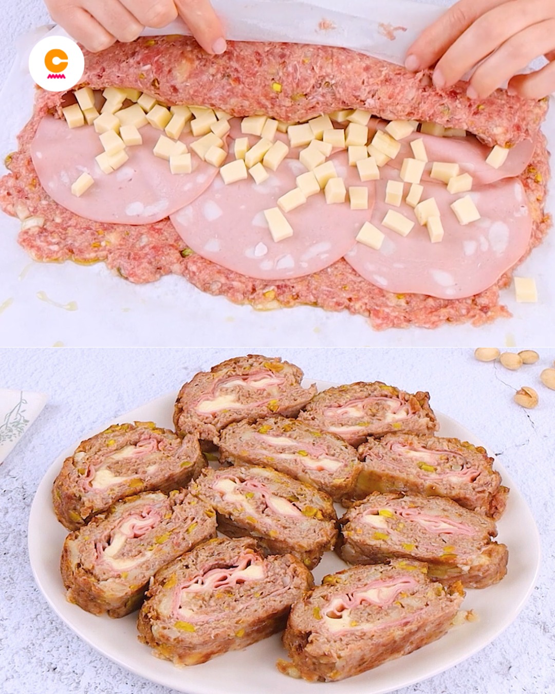 Il polpettone ripieno con mortadella e pistacchio è un secondo piatto sfizioso e originale, una variante del classico polpettone di carne, arricchito con l’aggiunta di pistacchi tritati nell’impasto e farcito con formaggio e mortadella. Per realizzarlo, basterà amalgamare la carne macinata con uovo, pane ammorbidito nel latte, pangrattato, pistacchi tritati, parmigiano e aromi. L’impasto sarà poi steso e farcito con mortadella a fette e formaggio a cubetti, prima di arrotolarlo e formare il nostro polpettone. Dopo la cottura in forno per circa 45 minuti, sarà pronto da tagliare a fette e gustare morbido e filante. Ecco i passaggi per realizzarlo.