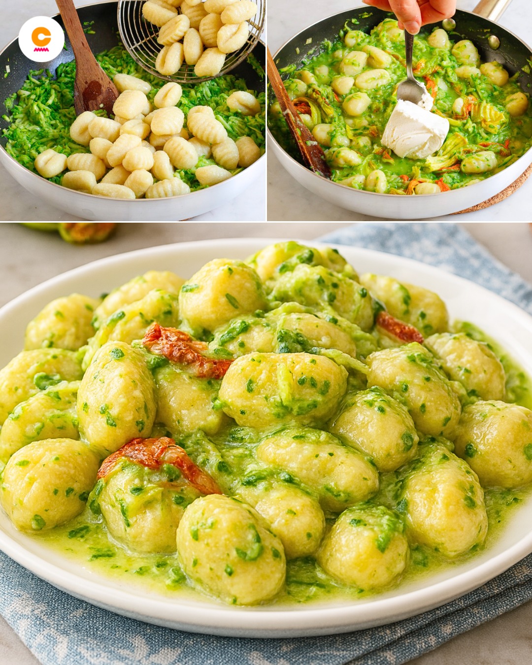 Scopri come preparare gli gnocchi con zucchine, fiori di zucca e robiola seguendo passo passo procedimento e consigli. Se ti è piaciuta questa ricetta, prova anche gli gnocchi zucchine e gamberetti, gli gnocchi speck e noci e gli gnocchi con crema di carciofi.