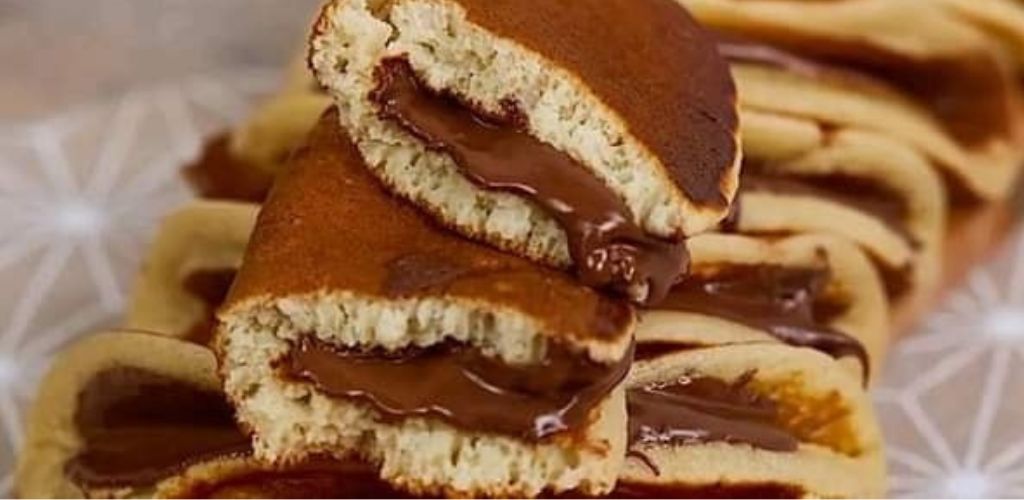 - Spalmare la crema di nocciole su metà di ogni pancake e piegarlo a metà.