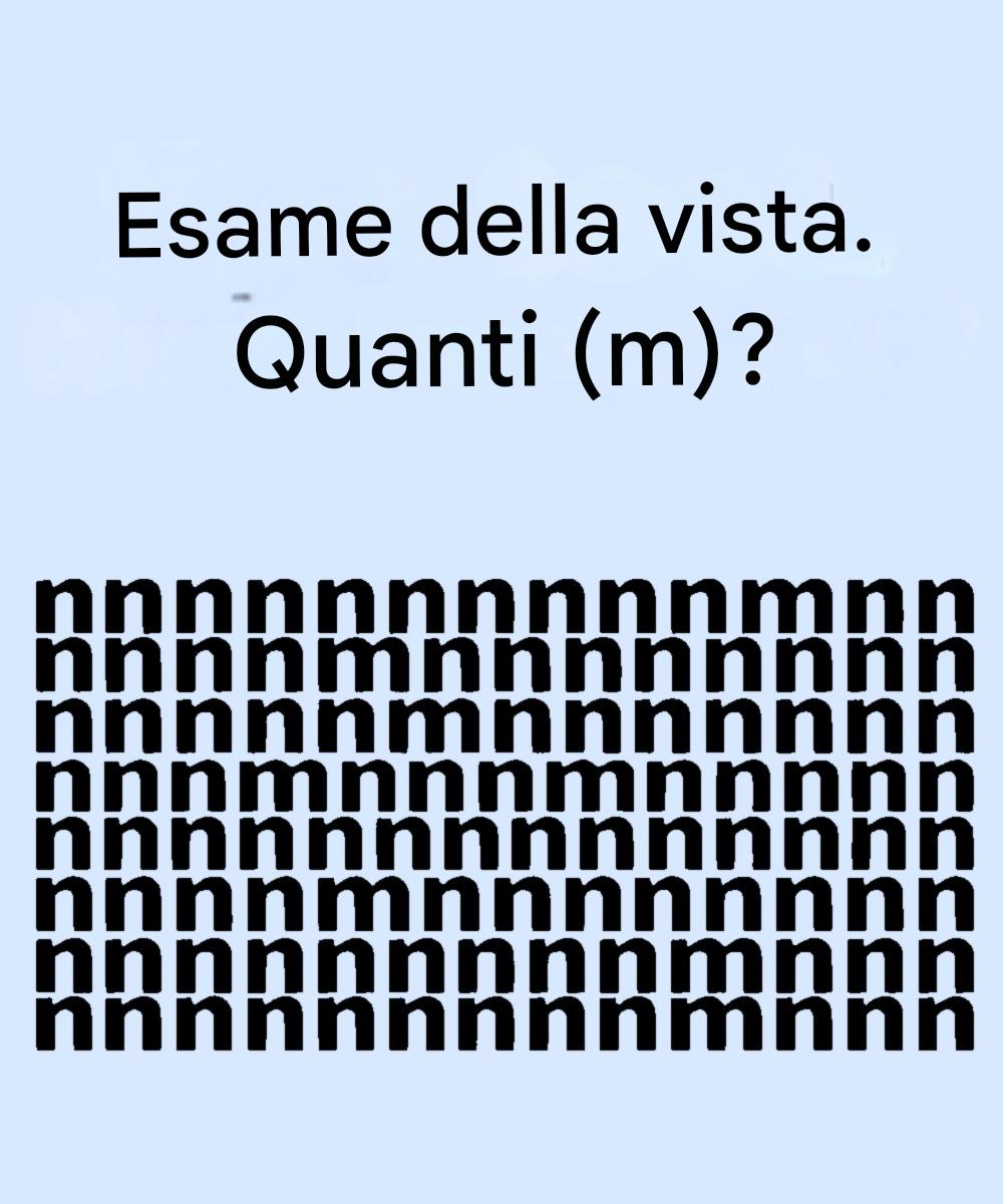 A prima vista, la griglia sembra abbastanza semplice – file e file di “n” minuscole – ma nascoste tra di esse si celano alcune “m” sapientemente posizionate che possono facilmente passare inosservate. Questo test è pensato per richiedere attenzione ai dettagli, percezione visiva e pazienza.